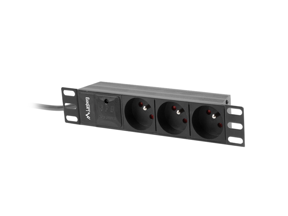 Panneau 10″ 1U 3 prises 2P+T (FR) – 230V 16A – Câble 2 m – Noir
